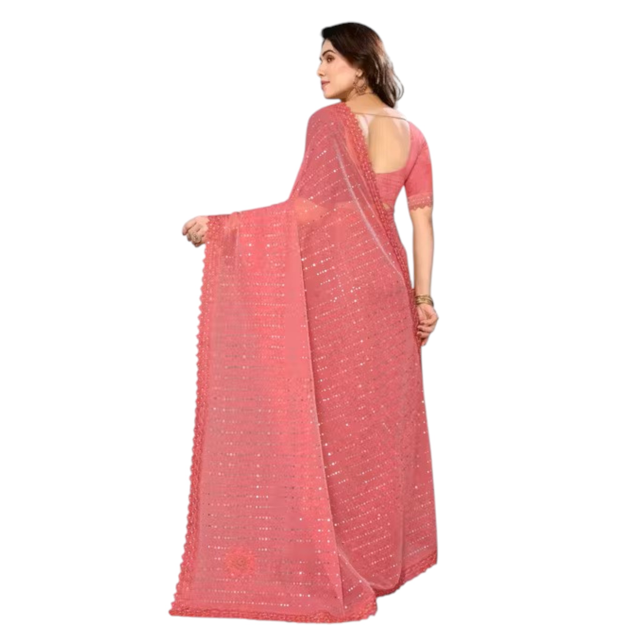 Women’s Designer Net Saree with Sequin Work and Lace Border – Party & Festive Wear with Blouse Piece