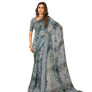 Women’s Elegant Tie-Dye Printed Saree with Contrast Border – Lightweight Casual & Party Wear Saree with Blouse Piece